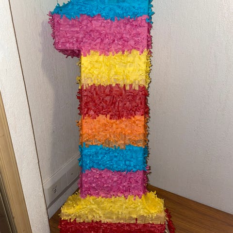 Ihana aasin muotoinen pinjata kirkkaissa väreissä. Pinata on hauska yllätys mihin tahansa juhliin ja se voidaan täyttää sekä makeisilla että pienillä leluilla.