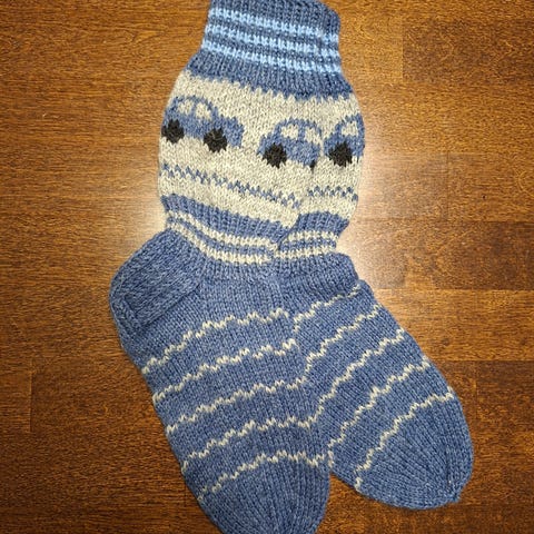 Novita 7-veljestä langasta neulotut villasukat, koko 30-32, jalkapohjan pituus n.21cm, vahvistettu kantapää. Uudet. 5e/sukkapari. Nouto Noljakasta.