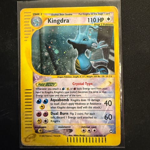 Pokémon Crobat 147/144 reverse holo -kortti. Kulmissa pientä kulumaa ja takana haalistumista.