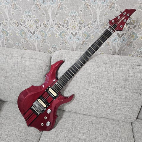 Myyntiin laadukas ESP E-II ST-2, liekehtivä vaahterakansi (Reindeer Blue), pultattu vaahterakaula, 25.5 tuuman asteikko ja 22 jumbo-nauhaa ruusupuisella otelaudalla. Pari DiMarzio CTM Direct Mount -mikkiä. Floyd Rose Original -tremolo ja Gotoh-virittimet.
