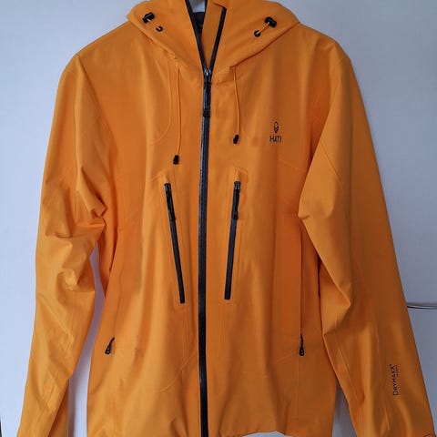 Halti Kaarna 3L kuoritakki. Väri tumman sininen. Vähän käytetty. Säilytyksessä ryppyyntynyt. Kaikki teippisaumat ehjät, ei repsota. Kiristettävä huppu
