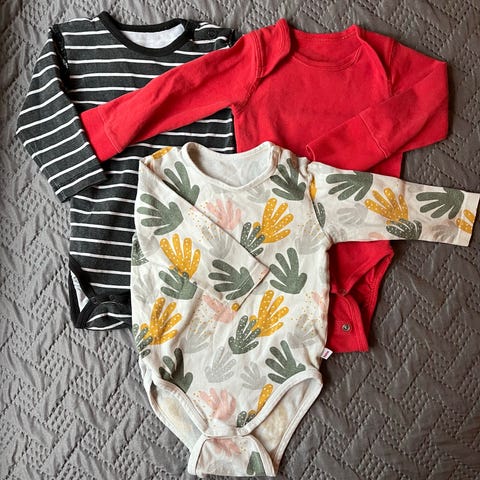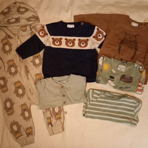 Osa vaatteista ostettu uutena, osa käytettynä. Pesty hajusteettomasti.