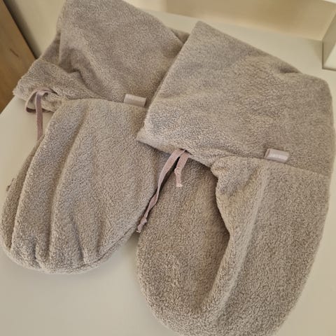 Tummanruskealla nahalla verhottu lampaanvillapussukka, jossa saat varpaat pidettyä ihanan lämpöisinä. Koko noin 30x25, joten isommatkin jalat mahtuvat sisään (myös mieheni 45 numeroinen jalka). Kätevä, sisäosan saa helposti irroitettua (nepparikiinnitys), joten on helppo pitää puhtaana, juuri pesty. Syksyn ja talven viimaan ja kylmyyteen, luistelun tai hiihdon jälkeen, takkatulen loimuun, neulomistöiden tai lukemisen oheen, lentokoneeseen, lisämukavuudeksi, verenkierron parantamiseen. Kissatalous.