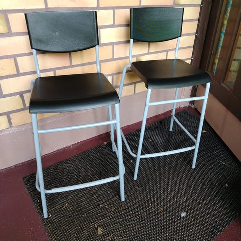Käytössä ollut mutta yleisilmeeltään siisti korkea tuoli valkoisilla puuosilla ja harmaalla istuinolsalla joka pehmustettu.Tuoli luultavasti Ikean mallistosta,vaati hieman kiristyksiä(otettu hinnassa huomioon)...Haku sovitusti Vuoksenniskalta.
