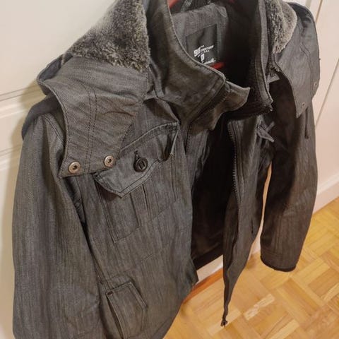 Uusi ja käyttämätön miesten/unisex-mallinen farkkuteddy-talvitakki.