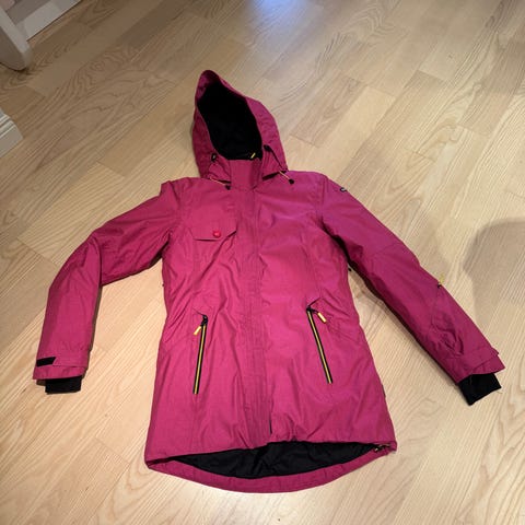 Lämmin Torstain punavalkoinen lasketteluasu. Housuissa joustavat henkselit ja lahkeissa lumipussit. Takissa huppu ja mukava fleecekaulus. Sekä takki että housut kokoa 40.