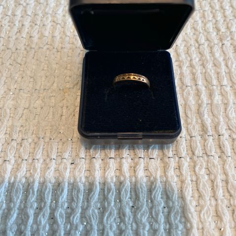 Luultavasti pronssista tehty sormus. Pienellä nätillä kivellä lehtien keskellä.