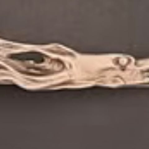 Kalevalan korun pronssinen solmioneula, solmiopidike, solmion pidike.