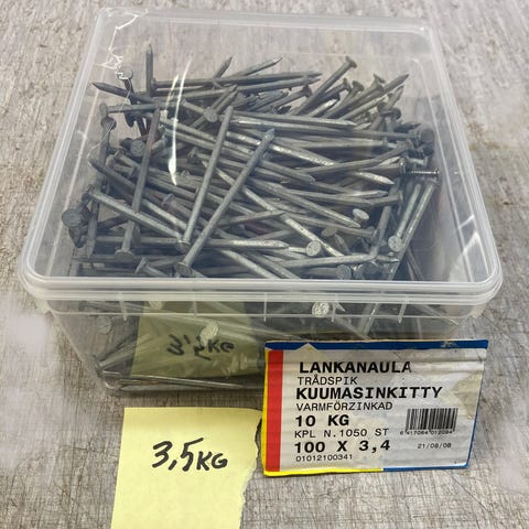 Paketti, jossa ei näy kokoa, on 75 mm nauloja.