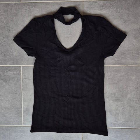 Siisti naisten musta paita , takaa vähän pitempi kuin edestä. Materiaali kevyttä kreppimästä. 100% polyester