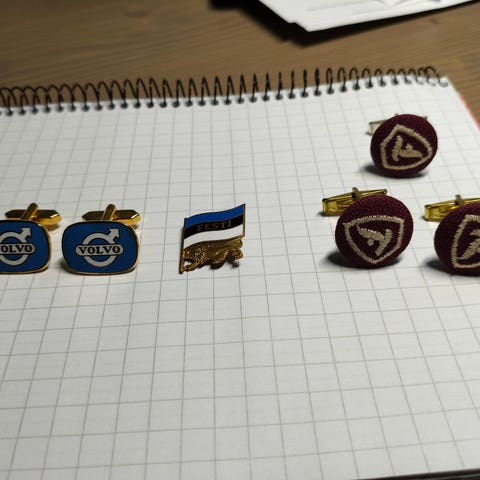 Tyylikkäät ja hyväkuntoiset Kultaseppä Hallbergin valmistamat kalvosinnapit 1940–1950-luvulta.