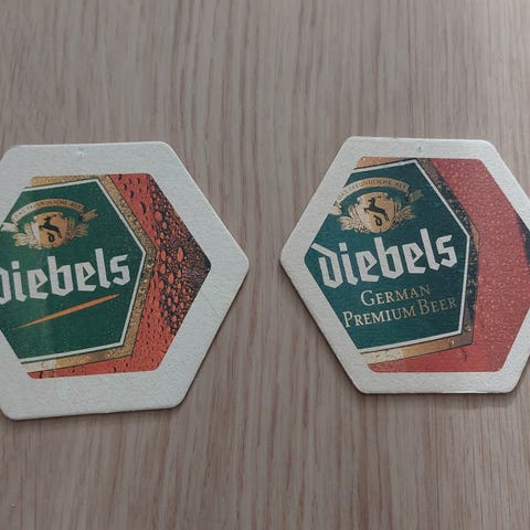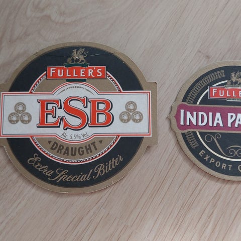 Myydään kuvanmukaiset vanhan brittiläis panimon Charles Wells oluiden tuopinaluset / lasinaluset, 4kpl.