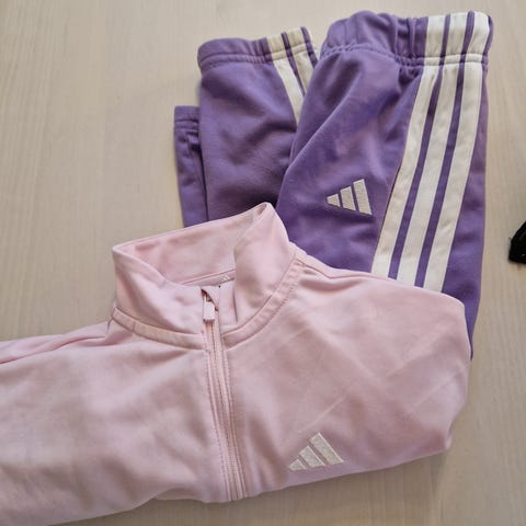 Käytettynä meille ostettu Adidaksen musta verkkapuku koossa 98. Hieman pehmentymää housuissa pepun ja polvien kohdalla, mutta ei reikiä. Vielä oikein toimiva setti seuraavalle.