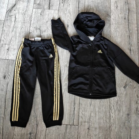 Adidaksen musta verkkatakki koossa 98. Meille käytettynä tullut. Pieni tahra takin etuosassa (kuva), en ole yrittänyt poistaa.