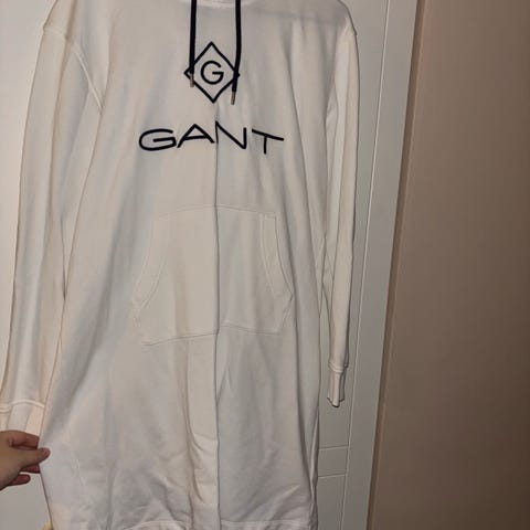 GANT huppari, koko pieni M. Väri valkoinen. Hupparissa on edessä GANT-logo ja sen alla joku pieni jälki (näkyy kuvassa), ei ole kokeiltu pestä.