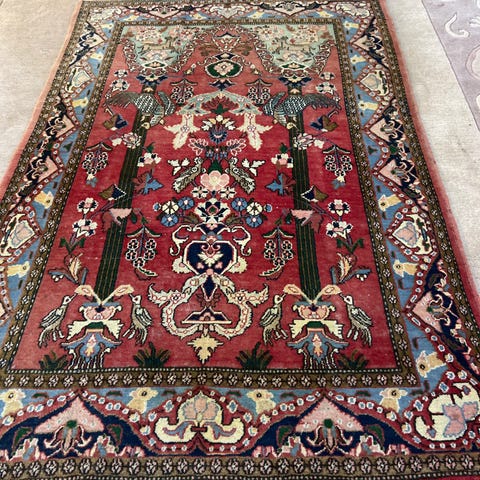 Myynnissä hyväkuntoinen Itämainen Käsinsolmittu Villamatto mitat 105-150 cm. Hajuton. Tahraton.