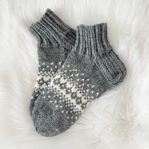 Harmaa pinkki valko kuvoiset villasukat. Koko 35-36. Pohjan pituus venyttämättä 21cm. 80% villa ja 20% polyamidi.