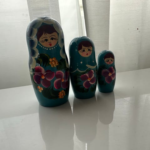 Myydään Maatuska puinen, sisältää viisi erikokoista ja -väristä nukkea, jotka ovat perinteisesti maalattuja ja valmistettu puusta. Korkeus 8,5cm. Postitus tai nouto Espoosta.