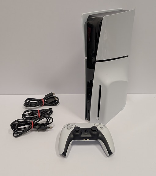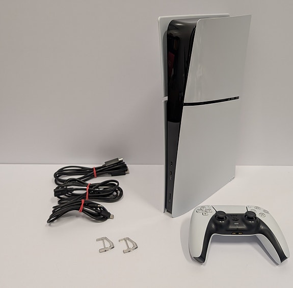 PS5 Pro -konsoli, DualSense -ohjain, virtajohto, hdmi, USB-C latausjohto ohjaimelle, vaakatuet, pikaopas, myyntipakkaus, alkuperäinen takuukuitti.