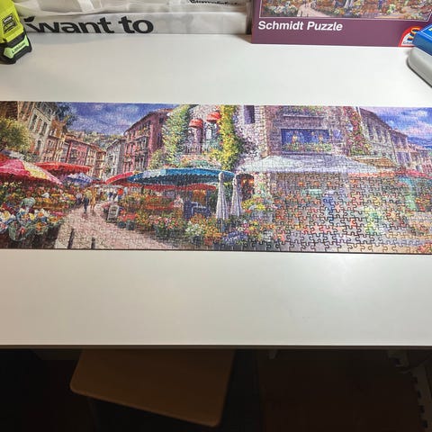 Schmidt Puzzle David Lloyd -palapeli, jossa on 1000 palaa. Palapelin kuva-aiheena on iltahämärässä oleva kaupunkimaisema, jossa näkyy polkupyöriä ja rakennuksia. Palapeli on tarkoitettu aikuisten tai nuorten käyttöön ja se tarjoaa haastetta ja viihdettä palapelien harrastajille.