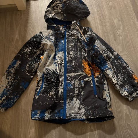 Jonathan lasten takki koossa 128, oranssin värinen, kukkakuosilla. Sopii tytöille. Takissa on hupullinen malli ja pitkä hiha, materiaali ei ole ilmoitettu.