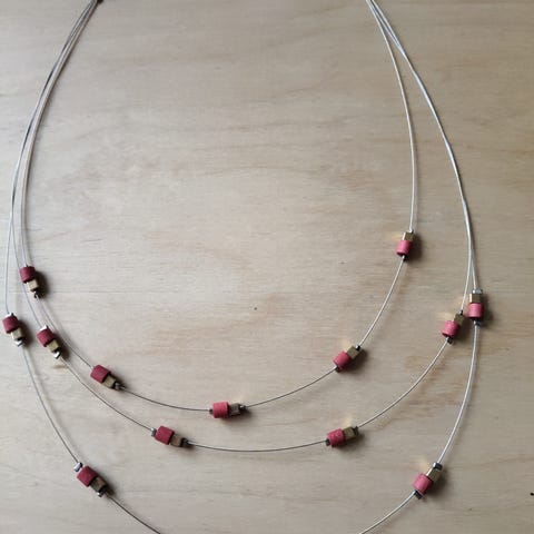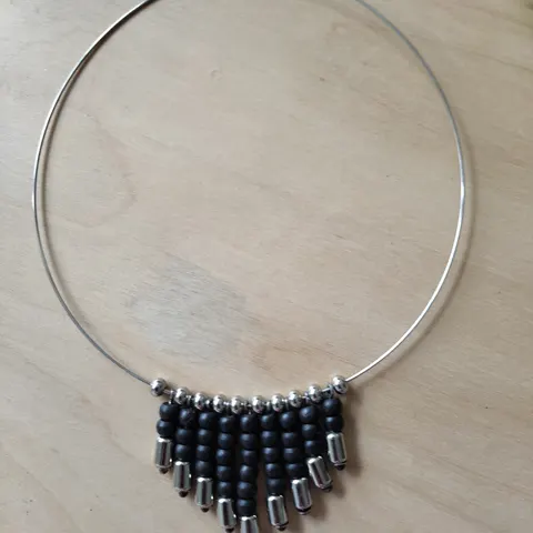 Kuvan kookas sini/hopeinen Aarikan kaulakoru.