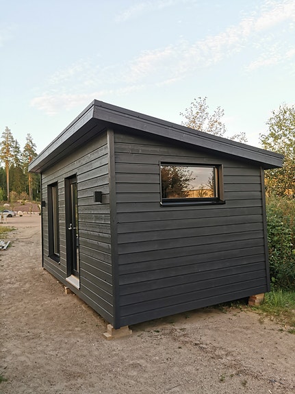 Ammattirakentajien toimesta toteutettavissa tyylikäs 17,8m2 kauttaaltaan Lämpöeristetty ja täysin sähköistetty pihasauna kookkaalla majoitustilalla!