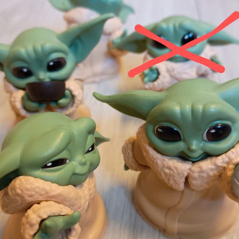 Baby Yoda , Grogu figuuri, sekä pikkuinen sammakko ja oma kuljetuskapseli irroitettavalla kannella.