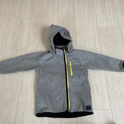 Ihana harmaa/musta +keltaiset somisteet softshell/windfleece/välikausitakki merkiltä Polarn O. Pyret. Käytetty, pieniä käytönjälkiä löydettävissä; hihansuuresoreiden kiinnitys saumassa hihojen alapuolella sauman paksussa kohdassa kuluneet kohdat (viimeinen kuva). (Jäävät käytössä hihan alapuolelle l. eivät juurikaan näy.) Nimikointitarrasta jäänyt liimajälki sisäpuolella kokonumerolapussa. Pientä kulumaa, nyppyä etureunan huolittelunauhassa. Ei ikitahroja, tms. Mielestäni ihan käyttökelpoinen seuraavalle!
