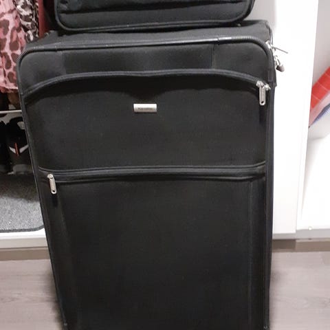 Matkalaukku pukujen paitojen ja kenkien kuljetukseen kätevästi ja siististi. Ehjät vetoketjut. Uuden veroinen!