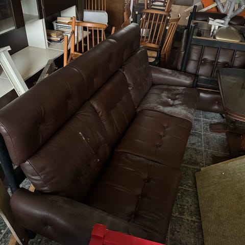 Ehjä retro sohva, kuvassa paskainen. Pesu jää uudelle omistajalle