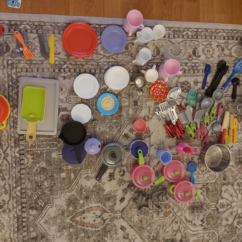 Sisältää: 11+ ruoanlaittotarviketta, uudelleen käytettävää muovailtavaa hiekkaa sekä reseptikortin visuaalisilla ohjeilla.