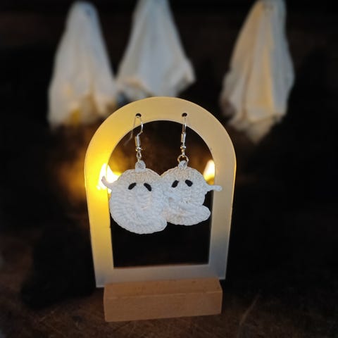 Kummitus/aave kooltaan: korkeus n. 4 cm, leveys n. 3 cm, kokonaiskorkeus n. 6 cm. Kevyet.