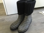 Marimekon käyttämättömäksi jääneet ruudulliset kumisaappaat. Kokeiltu.