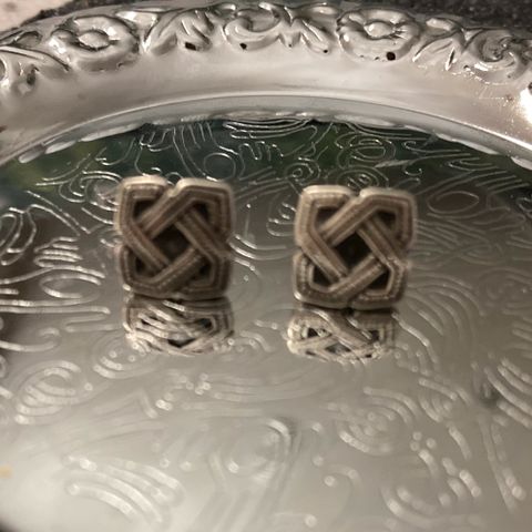 Kalevala Korun pronssiset Osmansolmu, tappi -korvakorut. Vanhat korut, hieno patina.