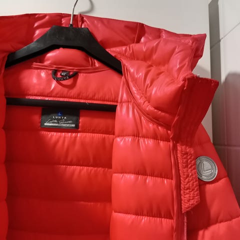 Myydään Luhdan kaunis takki koossa 42. Helmassa kiristysnyöri, takissa kaksisuuntainen vetoketju. Postitus onnistuu.