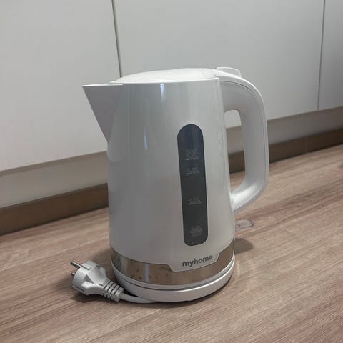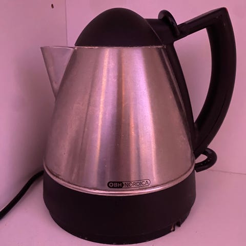 Keltainen vedenkeitin, toimii täydellisesti, vaikka vähän nuhjuinen. Mieluummin ilman toridiiliä, mutta diililläkin onnistuu. Ostajalle postit.