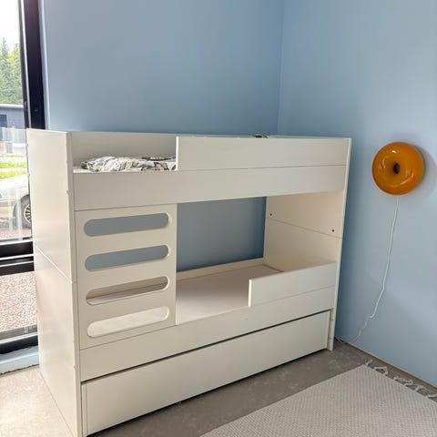 Runko 19mm valkoinen laminoitu koivuvaneri, sänkyjen pohjat 15 mm koivuvaneria hengitysreijillä.