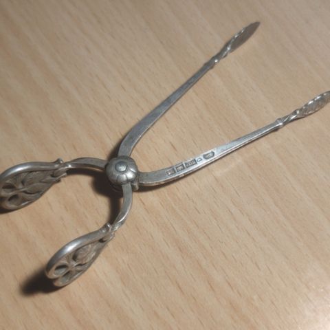 Kuvassa olevat kotimaiset 813 hopeiset sokeripihdit/ sokeriottimet. Leimat: Ko/oy, kruunu, 813H, A6. Pituus n 12 cm. Ei kaiverruksia.