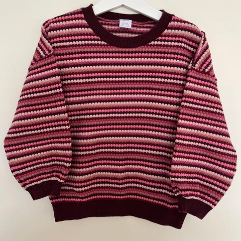 Käyttämätön neulepusero, Lindex 110/116. Laput on irroitettu, mutta kasvupyrähdyksen vuoksi jäi pieneksi ennen kun pääsi käyttöön.