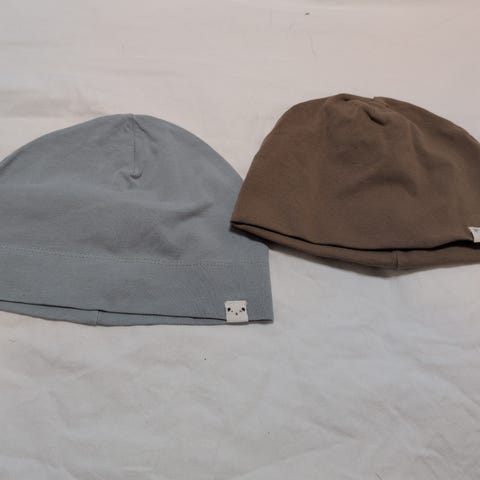 Kaksi trikookankaista kukallista H&M pipoa vauvalle koossa 86-92.