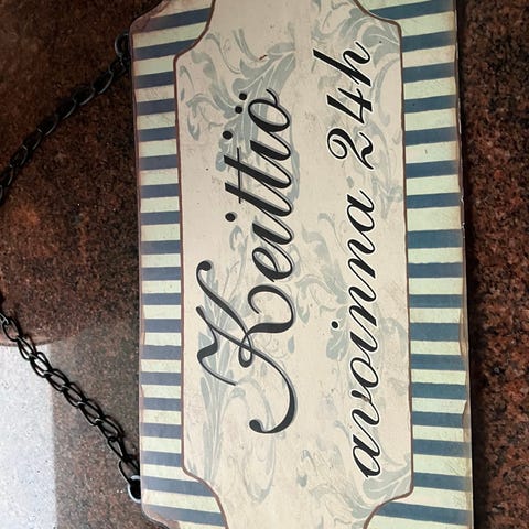 Vanhan ajan tyylinen kyltti ”Bathroom”. Materiaali alumiinia, päälle 2D printattu. Halkaisija 20cm. Käyttämättä jäänyt!