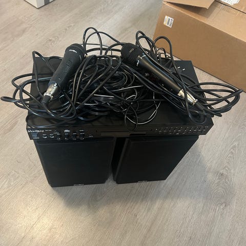 Myynnissä ylimääräisenä pari tehokkaita kaijuttimia esimerkiksi karaoke käyttöön. Kaijuttimissa on oma vahvistin eli erillistä vahvistinta ei tarvita. 200+200w tehot eli ei lopu vola kesken olohuoneessa. Vastaavia paljon käytössä esim karaokebaareissa. Sopii tapahtumakäyttöön. Mahdollisuus kiinnittää kaijutinjalustat pohjaan.