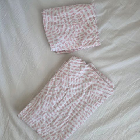 Finlaysonin pussilakanasetti vaalea lila/valkoinen hyväkuntoiset