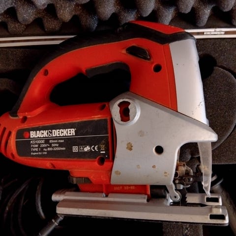 Black & Decker sähköinen pistosaha musta, johdollinen malli, kätevä kotikäyttöön ja puun sahaamiseen. Terän kunto kohtalainen.