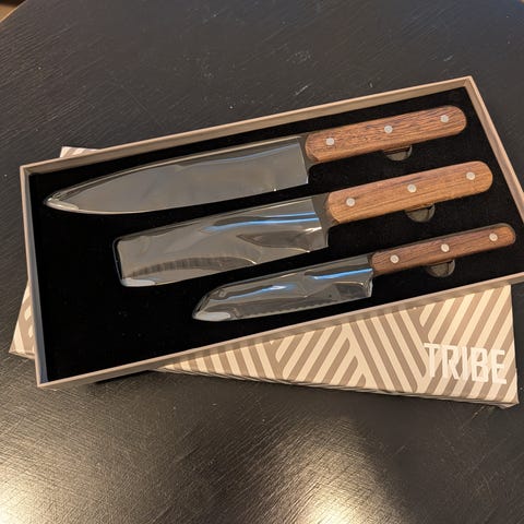 Pakkauksessa on tomaattiveitsi, japanilainen kokkiveitsi ja kokkiveitsi. Nämä veitset kestävät vuosia.
