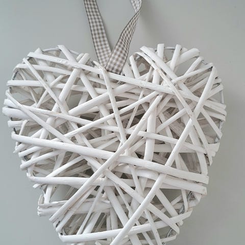 Uusi valkoinen sydänkoriste. Halkaisija:25cm, korkeus;25cm