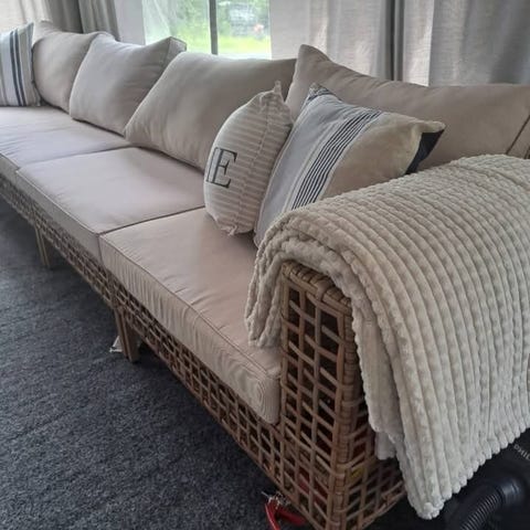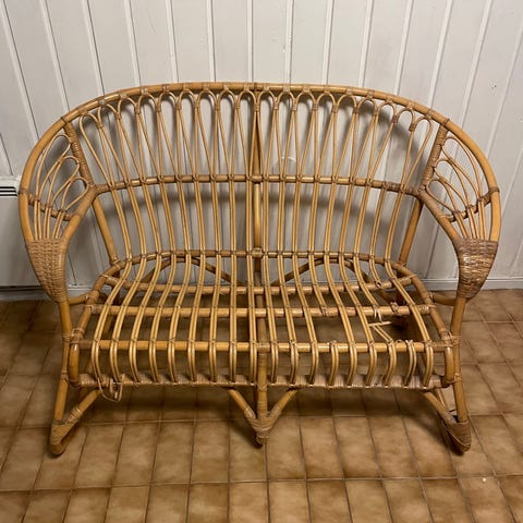 Parolan rottingin hyväkuntoinen Lumikenkä sohvakalusto, joka sisältää kaksi tuolia, sohvan ja sohvapöydän.