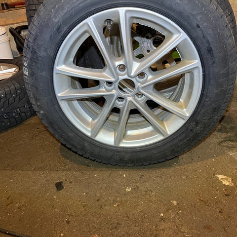 215/60r16" Nokian Hakkapeliitta nastarenkaat 5x108 jakoisilla 7x16" alumiinivanteilla. ET48mm ja keskireikä 63,4mm.