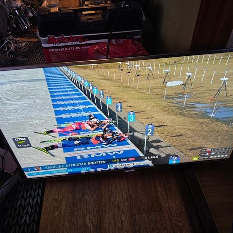Ei kaukosäädintä mutta kaikki tarvittavan saa telkkarin omista nappuloista.